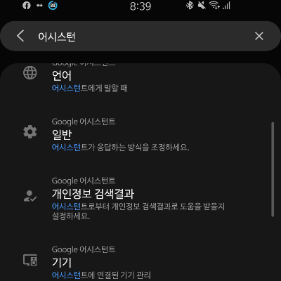 갤럭시S10 기준, 설정 화면 -> 검색창에 "어시스턴트" 라고 검색한다. 여기에서 "어시스턴트 기기" 항목을 찾아 들어간다.