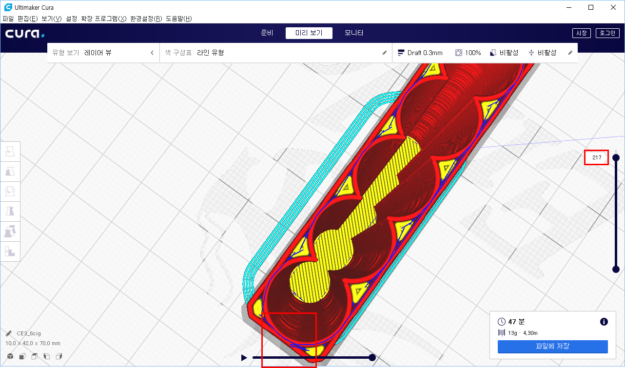 0. 설정 : 0.1mm레이어로 출력하면 퀄리티는 미친듯이 올라간다. 허나 출력시간은 0.2mm의 두배이다. 고퀄리티를 원하는 것이 아니라면 0.2mm로 출력하는 것이 정신건강에 이롭다.