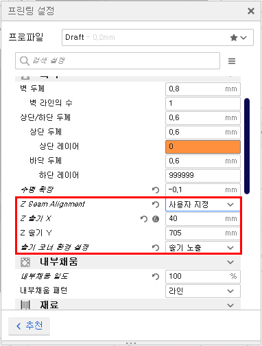 0. 설정 : 0.1mm레이어로 출력하면 퀄리티는 미친듯이 올라간다. 허나 출력시간은 0.2mm의 두배이다. 고퀄리티를 원하는 것이 아니라면 0.2mm로 출력하는 것이 정신건강에 이롭다.