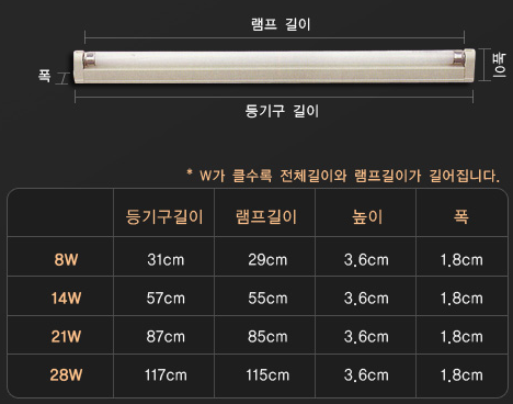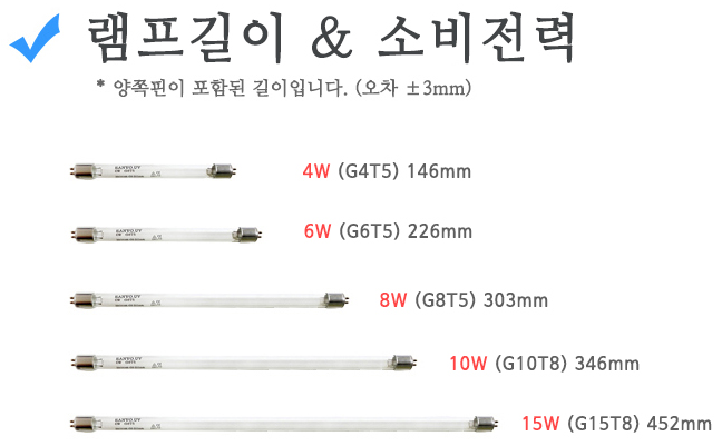 UV Lamp는 다양한 길이별로 판매가 되고 있는데, 길이별로 사용이 가능한 등기구가 다르니 필요한 길이를 체크하는 것이 중요하다. 나의 경우에는 리빙박스 뚜껑에 부착할 용도(G8T5)로 길게 설계했다.