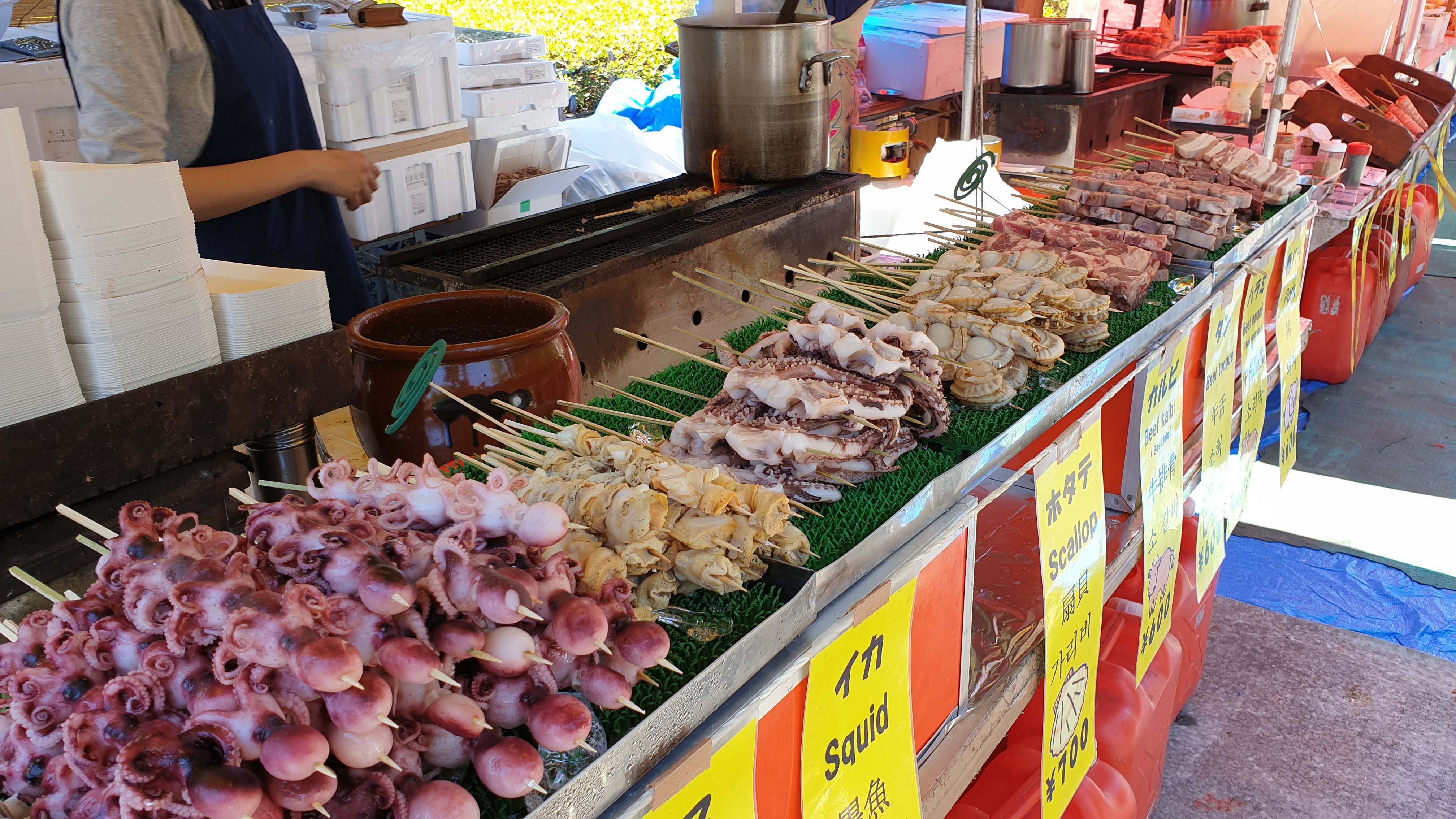 갓파바시 그릇거리를 가는 도중에, 북소리와 음악소리가 들리길래 찾아갔더니 아주 운이 좋게도 축제를 발견할 수 있었다. 거기에, 왁자한 곳을 따라가니 이러한 노점상들도 만날 수 있었다. 지금까지 여행하면서 가장 운이 좋았던 순간이 아니었을까 싶을 정도. 수많은 만화책이나 애니메이션에서나 볼법한 축제를 직접적으로 볼 수 있었던 건 여러모로 행운이었다.